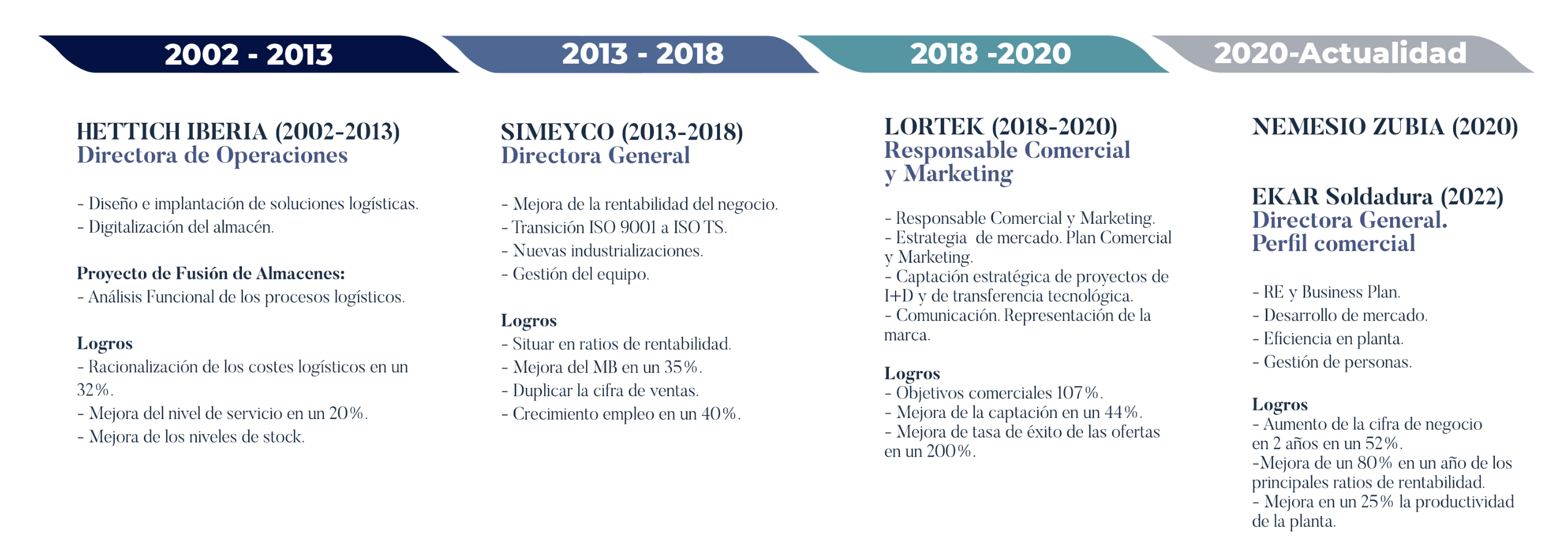 Soy una profesional senior en Ingeniería en Organización Industrial con más de 22 años de experiencia en diversos puestos de responsabilidad en el sector metalmecánico gipuzkoano.